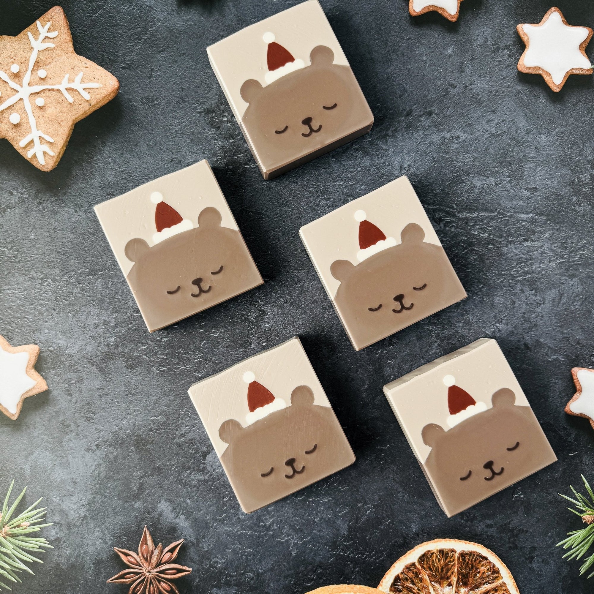 Meet Beary Christmas, our festive handmade soap featuring an adorable bear wearing a Santa hat, embedded all the way through the bar — so the little bear stays with you until the very last wash.